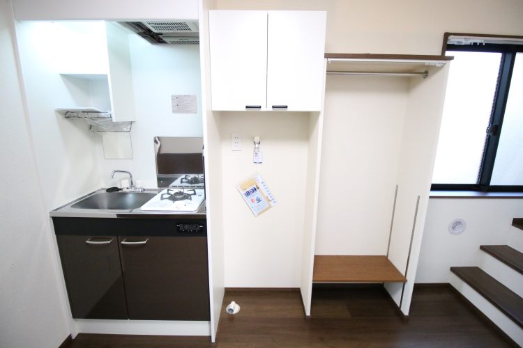 今回の居室は2015年9月末に完成した、新築賃貸アパートメント。室内はわずか13.67平米(*別途ロフトが6.42平米あります。)しかないのですが、その狭い室内に様々な工夫がもたされています。
