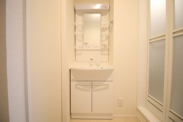 室内は、新築にはおなじみの充実した設備が備わっています。バス・トイレ別、浴室は追い焚機能付き、室内にも洗濯物が干せる室内物干や、独立洗面台、ちょっとしたところに付いている収納たち。真っ白で美しい室内には、どんなインテリアも映えそうです。