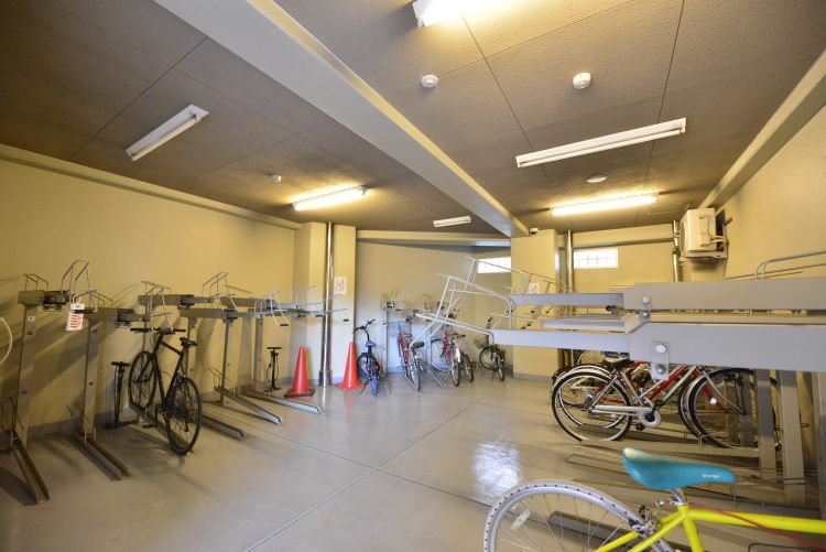 2. 共用部の設備が充実しています。不在時に荷物を預けておける宅配ボックス、屋根付き+鍵付きの自転車置場が用意されています。