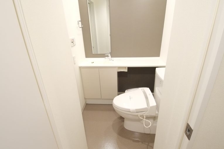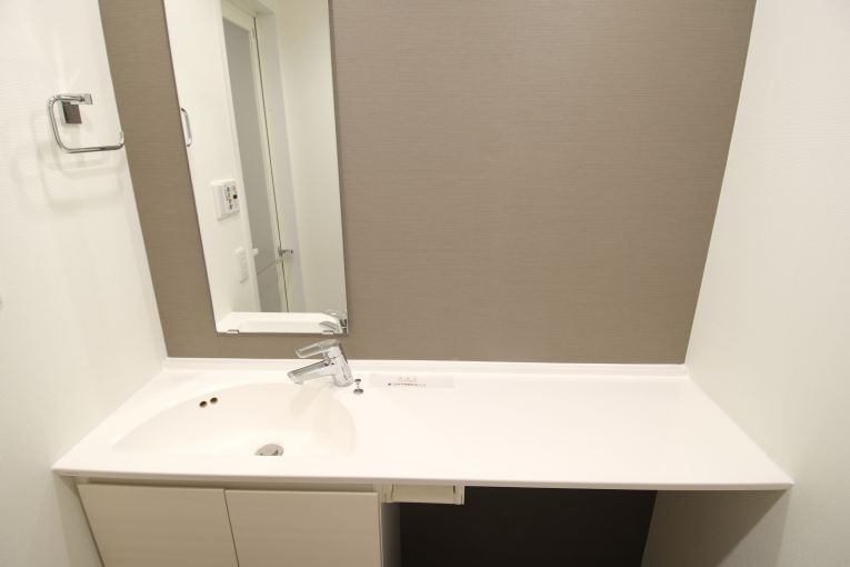 洗されたデザインの独立洗面台が設置されています。洗面台横にスペースがあるのも嬉しいポイントです。 -