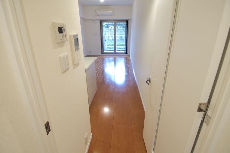 収納スペースが充実しており、廊下の壁一面に収納が用意されています。 -