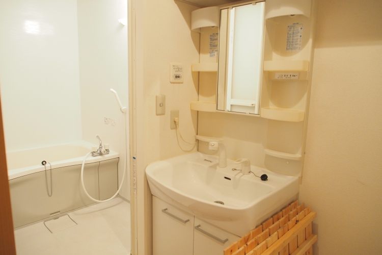 バルコニーにタイルが敷かれていたり、水周り用にすのこが用意されていたり、細かなところまで配慮されているのを見ると、貸主様が大事に物件を管理されているのが感じられます。