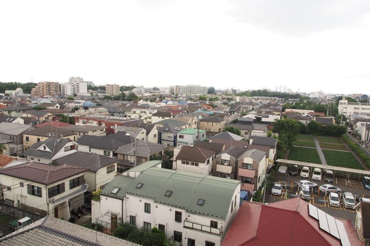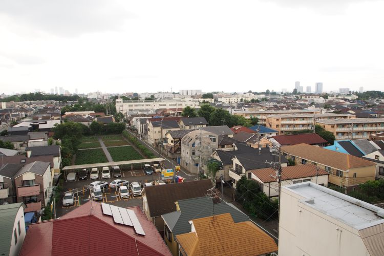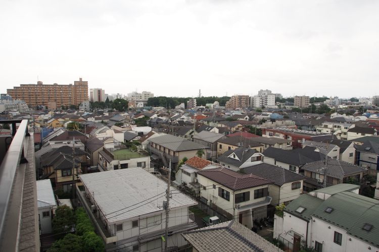 7階で周辺に高い建物がないのも良いところ。撮影時はあいにくの雨模様でしたが、晴れの日は、南向きで周辺に高い建物がない為、日当り良好です。