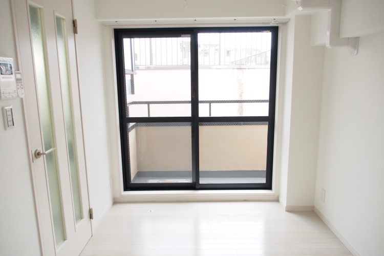 お部屋内は真っ白な内装。どんなインテリアも映えてくれそうです。L字型ですが、間取りも使いやすい。ベッドを窓側に寄せてしまえば、テーブルと椅子も置けそうです。残念ポイントは一点、クローゼットが狭めですので、収納の工夫が必要です。